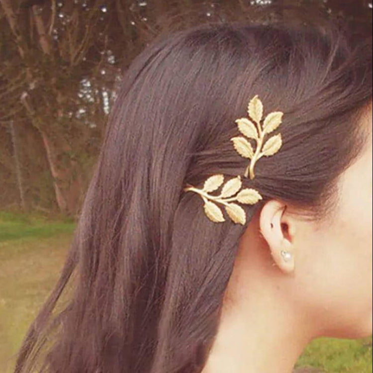 2 Pcs Five Dimensional Leaves Hairpin Golden